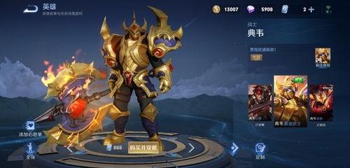 这款皮肤在细节处理上堪称完美。首先,典韦的服装采用了细腻的刺绣工艺,金线勾勒出精美的图案,让人不禁感叹设计师的匠心独运。其次,典韦的面部表情和眼神都经过精心设计,使得这位英雄在游戏中更具生命力。